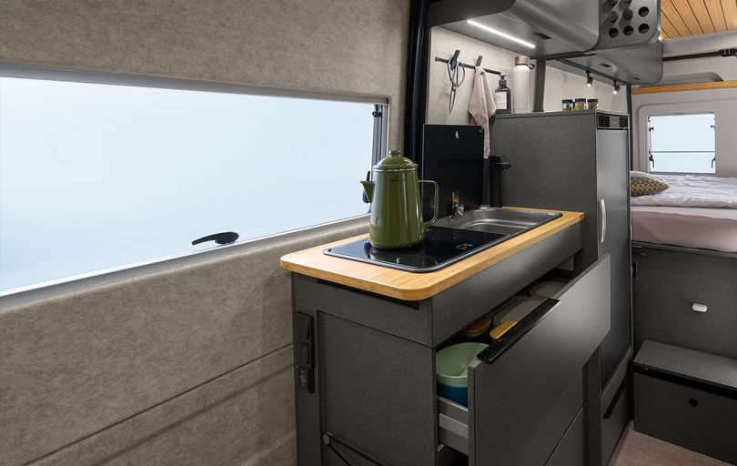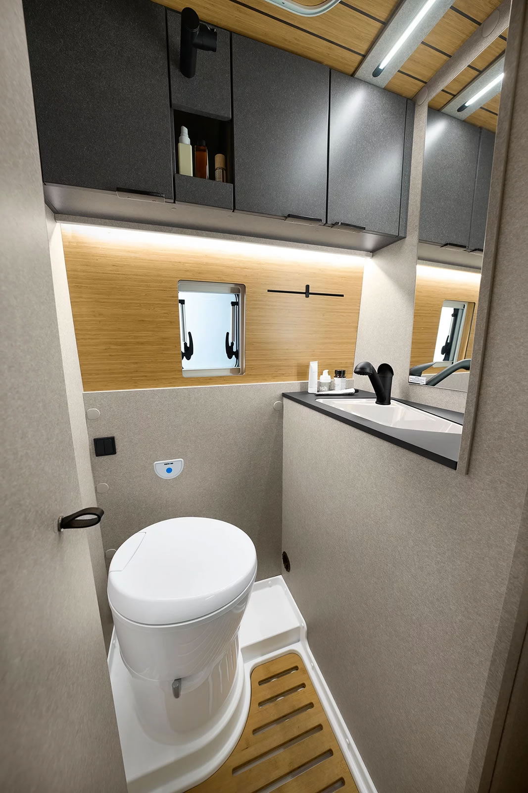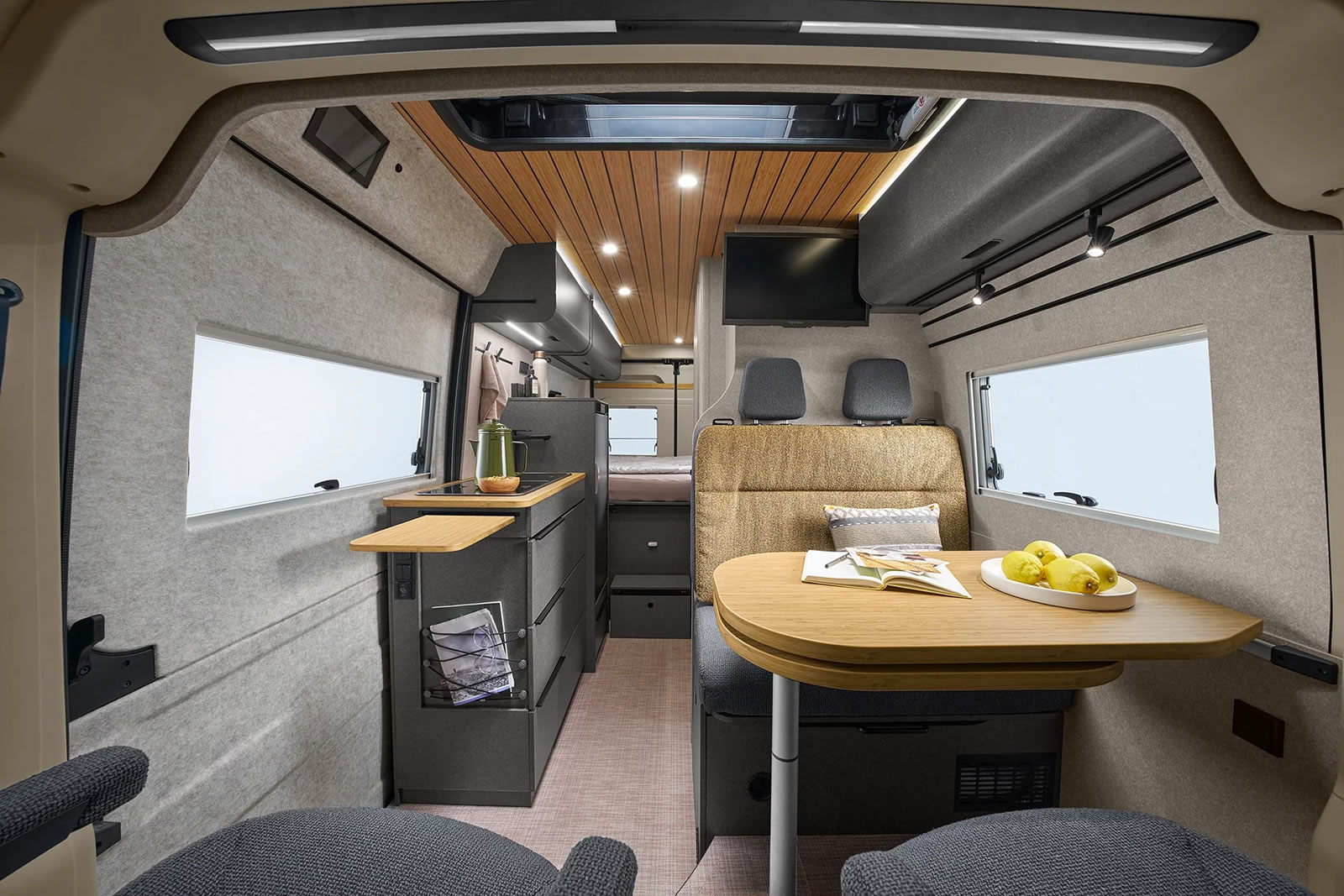Bambusové povrchy, textilní akcenty a texturovaný dřevěný strop nově definují interiér. Ambientní osvětlení a chytrá úložná řešení zajišťují stylový a útulný cestovní zážitek. HYMER Redwood nastavuje nové standardy v základní třídě.